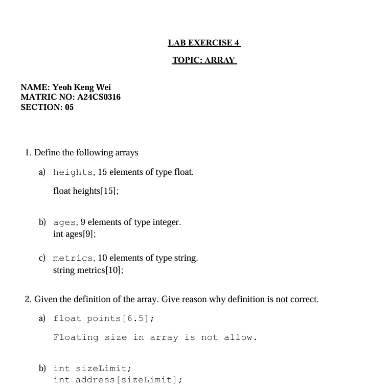 As a fundamental subject, this course equips the students with theory and practice on problem solving techniques by using the structured approach. Students are required to develop programs using C++ programming language, in order to solve simple to moderate problems. The course covers the following: preprocessor directives, constants and variables, data types, input and output statements, control structures: sequential, selection and loop, built-in and user-defined functions, single and two dimensional arrays, file operations, pointers, and structured data types.
